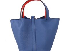 Hermès(爱马仕)Picotin 菜篮包 明蓝拼火焰红 togo 银扣 18cm
