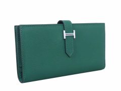 Hermès(爱马仕)H扣 长款钱夹 孔雀绿 银扣 EP