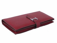 Hermès(爱马仕)H扣 长款钱夹 酒红色 银扣 togo