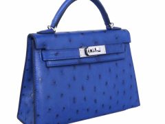 Hermès(爱马仕)miniKelly 二代 银扣 7T电光蓝 南非鸵鸟 20cm