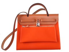 Hermès(爱马仕)Herbag 手提单肩包 金棕盖头橙色帆布 银扣 31cm