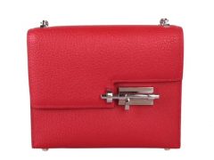 Hermès(爱马仕)Verrou 锁链包 中国红 山羊皮 银扣 17cm