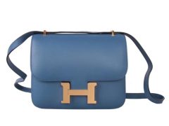 Hermès(爱马仕)Constace 空姐包 玛瑙蓝 epsom皮 金扣 19cm