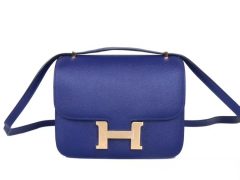 Hermès(爱马仕)Constace 空姐包 电光蓝 swift 金扣 19cm