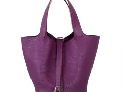 Hermès(爱马仕)Picotin 菜篮包 海葵紫内拼水粉 togo 银扣 18cm