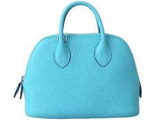 Hermès(爱马仕)mini Bolide 保龄球包 17 银扣 马卡龙蓝 Togo