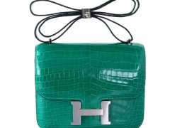 Hermès(爱马仕)Constace空姐包 银扣 6Q翡翠绿 亮面鳄鱼 19cm