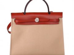 Hermès(爱马仕)Herbag 手提单肩包 金棕色盖头大红帆布 银扣 31cm