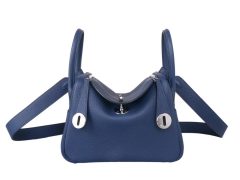 Hermès(爱马仕)mini lindy 迷你琳迪包 宝石蓝 Togo 银扣 20cm