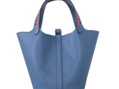 Hermès(爱马仕)Picotin 菜篮包 玛瑙蓝 编织系列 epsom皮 银扣 18cm