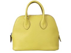 Hermès(爱马仕)mini Bolide 迷你保龄球包 柠檬黄 山羊皮 银扣 17cm
