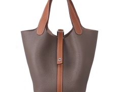 Hermès(爱马仕)Picotin菜篮包 大象灰拼金棕色 Togo 银扣 22cm