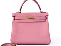 Hermès(爱马仕)kelly 凯莉包 奶昔粉 Togo 金扣 28cm