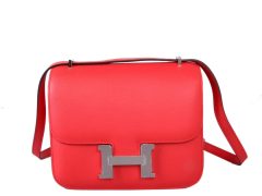 Hermès(爱马仕)Constance 空姐包 西瓜红 EP皮 银扣 19cm
