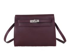 Hermes(爱马仕)Kelly danse 跳舞包 酒红色 swift皮 银扣 22cm