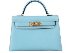 Hermès(爱马仕)mini Kelly 二代 金扣 微风蓝内拼樱花粉 epsom