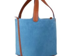 Hermès(爱马仕)2018新款 Picotin菜篮子包包 蓝色拼浅咖啡 麂皮 18cm