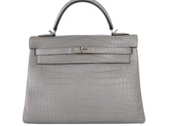 Hermès(爱马仕)Kelly 凯莉包 巴黎灰 雾面鳄鱼 银扣 28cm