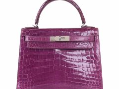 Hermès(爱马仕)Kelly 凯莉包 紫色 亮面鳄鱼 银扣 28cm