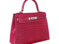Hermès(爱马仕)Kelly 凯莉包 5J桃红 亮面鳄鱼皮 银扣 28cm