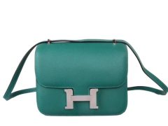 Hermès(爱马仕)Constace 空姐包 孔雀绿 epsom皮 银扣 19cm