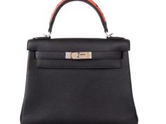 Hermès(爱马仕)Kelly系列2018新款 彩色手柄 28银 黑色 TOGO