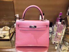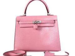 Hermès(爱马仕)Kelly 凯莉包 樱花粉 蜥蜴皮 银扣 25cm