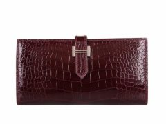 Hermes Bearn H扣钱夹 波尔多酒红 鳄鱼 现货