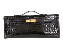 Hermès(爱马仕)Kelly Cut长款手包 黑色 鳄鱼皮 金扣 31CM