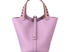 Hermès(爱马仕)Picotin菜篮 樱花粉 编织手柄 原厂epsom皮 银扣 18cm