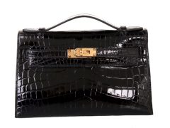 Hermès(爱马仕)mini kelly 一代 22cm 黑色 亮面鳄鱼 金扣