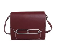 Hermès(爱马仕)roulis 猪鼻包 酒红色 swift皮 银扣 23cm
