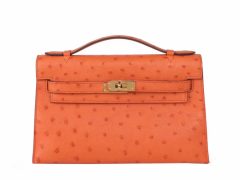 Hermès(爱马仕)Minikelly 迷你凯莉 93橙色南非鸵鸟 金扣 1代 22cm