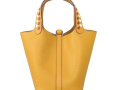 Hermès(爱马仕)Picotin 菜篮包 琥珀黄 编织手柄 epsom皮 银扣 18cm