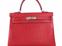 Hermes爱马仕 Kelly 32cm 银扣 Q5 中国红 南非鸵鸟 手工 神级