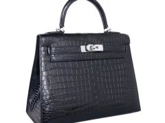 Hermès(爱马仕)Kelly 凯莉包 CK89黑色 亮面鳄鱼 银扣 28cm
