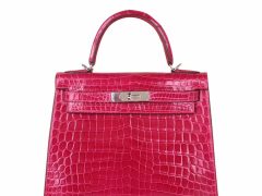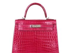 Hermès(爱马仕)Kelly 凯莉包 桃红色 亮面鳄鱼 银扣 28cm