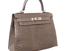 Hermès(爱马仕)Kelly 凯莉包 CK81斑鸠灰 亮面鳄鱼 银扣 28cm