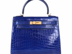 Hermès(爱马仕)Kelly 凯莉包 电光蓝 亮面鳄鱼 金扣 28cm