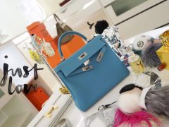 Hermès(爱马仕)Kelly 25CM 银扣 松石蓝 Togo