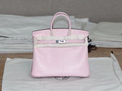 Hermès(爱马仕)Birkin 铂金包 淡粉色 原版蜥蜴 银扣 25cm