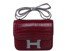 Hermès(爱马仕)Constance 空姐包 酒红 哑光鳄鱼 银扣 19cm