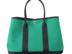 Hermès(爱马仕)garden party花园包 黑色拼丝绒绿帆布 togo 30CM