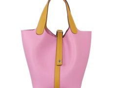 Hermès(爱马仕)Picotin菜篮包 樱花粉拼琥珀黄 银扣 18cm