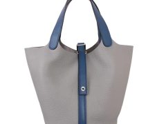 Hermès(爱马仕)Picotin 菜篮包 海鸥灰拼玛瑙蓝 togo 银扣 18cm