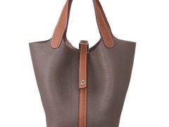 Hermès(爱马仕)Picotin 菜篮包 大象灰拼金棕色 togo 银扣 18cm