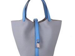 Hermès(爱马仕)Picotin 菜篮包 海鸥灰拼水妖蓝 togo 金扣 18cm