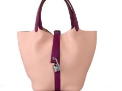 Hermès(爱马仕)Picotin 菜篮包 陶瓷粉内拼海葵紫 togo 银扣 18cm