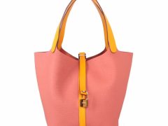 Hermès(爱马仕)Picotin 菜篮包 玫瑰茶粉拼太阳黄 togo 银扣 22cm