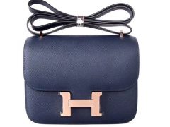 Hermès(爱马仕)Constace 空姐包 深海蓝 原厂御用epsom 玫瑰金扣 19cm